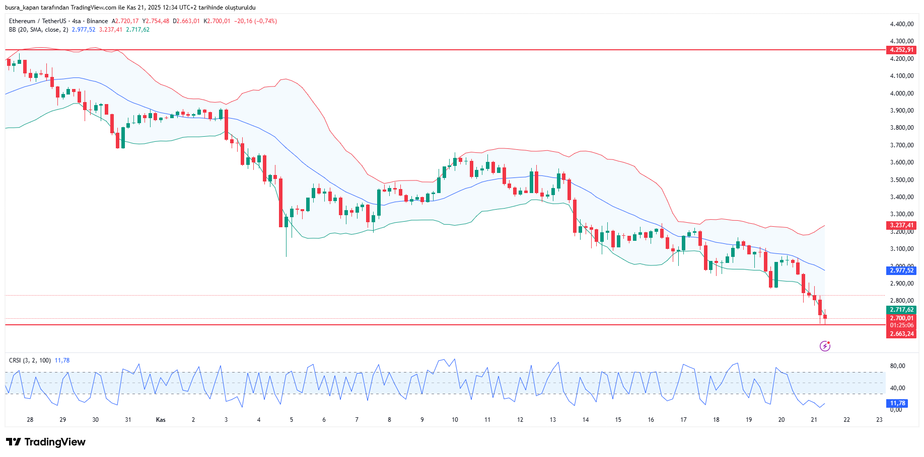 Altcoinler grubundan olan Ethereum da aşağı yönlü eğilimler yaşanıyor. Ethereum yüzde 11’e yakın düşüşle 2 bin 663 dolara geriledi. Öğlen seansında 13.32’de 2 bin 703 dolarda bulunuyor.